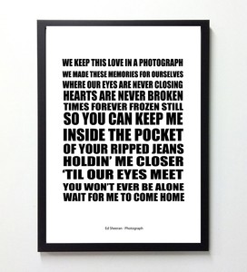 Photograph - ed sheeran | Song lyric quotes, Ed sheeran ... from i.pinimg.com More images for ed sheeran photograph song lyrics » Loving can hurt, loving can hurt sometimes but it's the only thing that i know when it gets hard, you know it can get hard sometimes it is the only thing makes us feel alive we keep this love in a photograph we made these memories for ourselves where our eyes are never closing hearts are never broken and time's forever frozen, still so you can keep me inside the pocket of your ripped jeans holding me closer 'til our eyes meet you won't ever be alone, wait for me to come home loving can heal. We keep this love in a photograph we made these memories for ourselves where our eyes are never closing hearts are never broken and times are forever frozen still. Jun 23, 2014 · photograph lyrics: You know it can get hard sometimes. And when it gets hard you know it can get hard sometimes it So you can keep me inside the pocket of your ripped jeans holdin' me closer til our eyes meet you won't ever be alone wait for me to come home. Learn how to sing in only 30 days with these easy, fun video lessons!